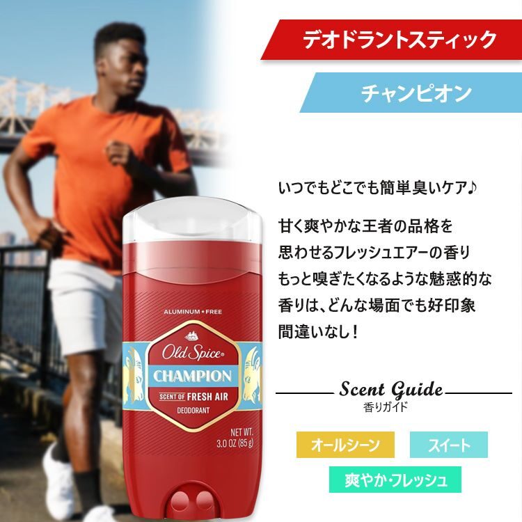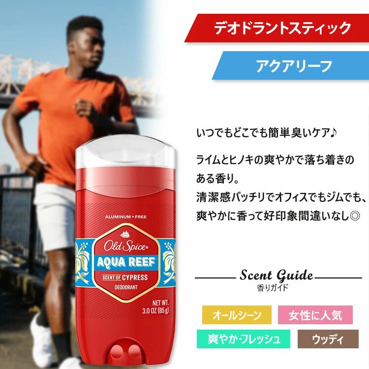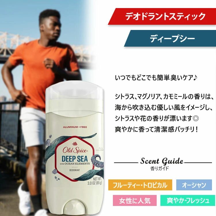 クセがなく職場・ジム・外出先など、どんなシーンでも使いやすく、初めてのOld Spiceにもおすすめ。