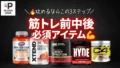 運動前に選ばれることが多いのは、プレワークアウト系、EAA、シトルリン、L-カルニチン、β-アラニンなど。
